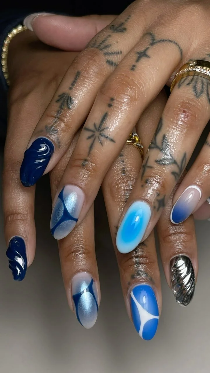 Includes a Russian dry manicure and hard gel overlay with a different design on each nail. subjected to upcharge depending on complexity/added colors
